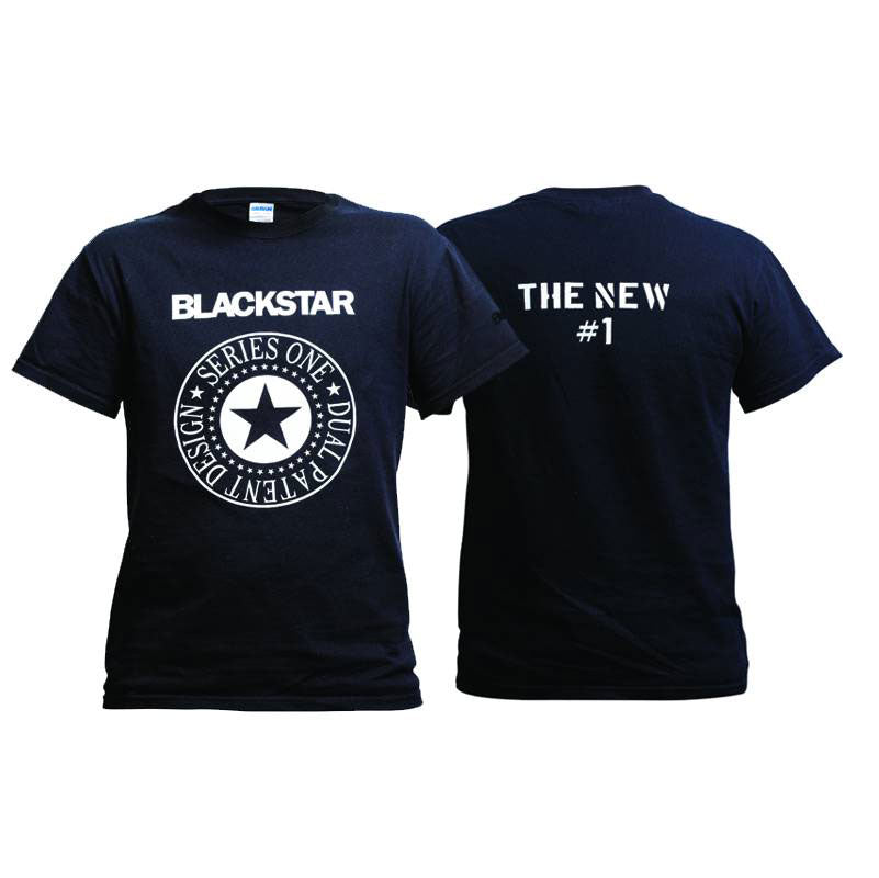 Ramones style Blackstar logo black t-shirt with the new #1 printed in white on the reverse.